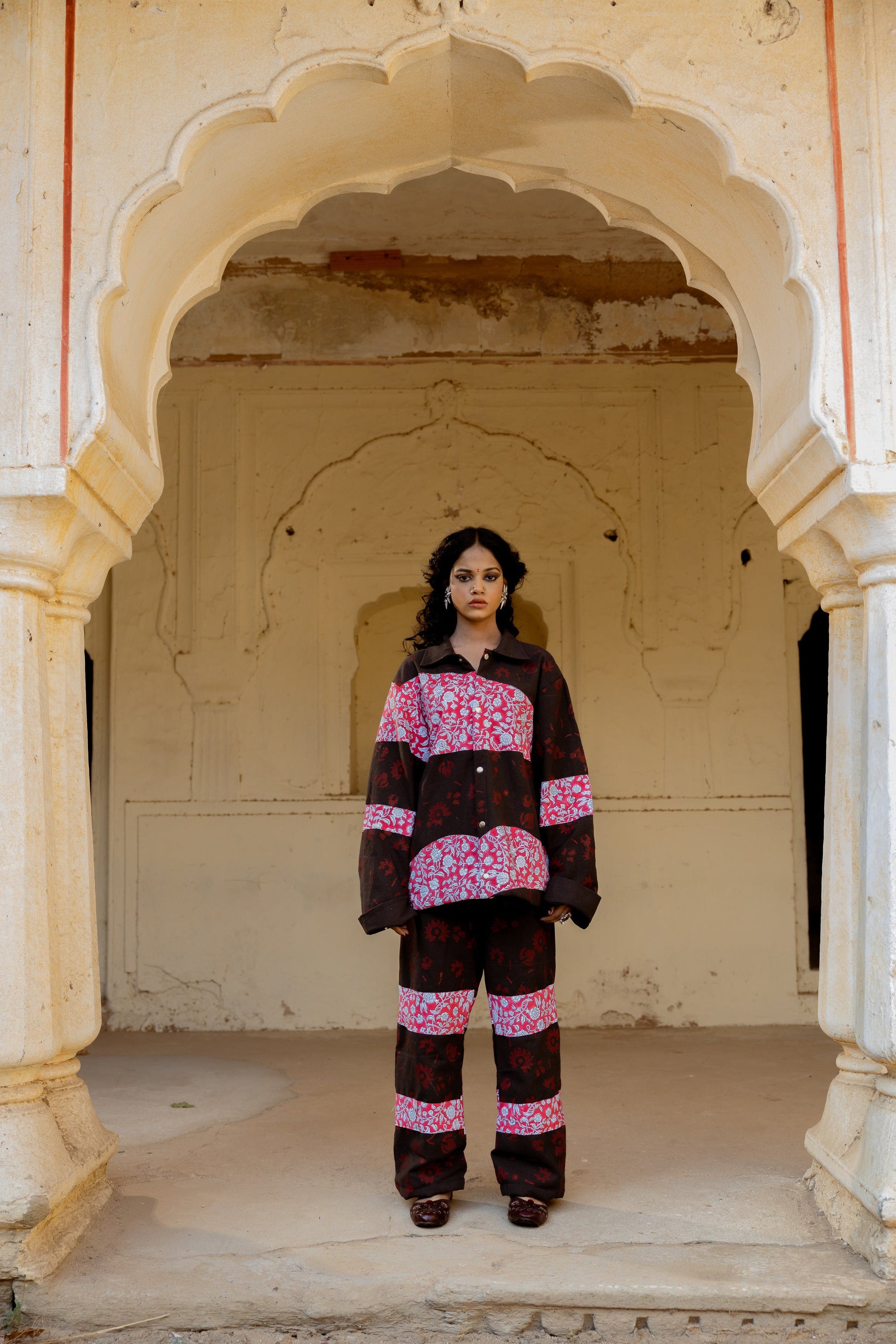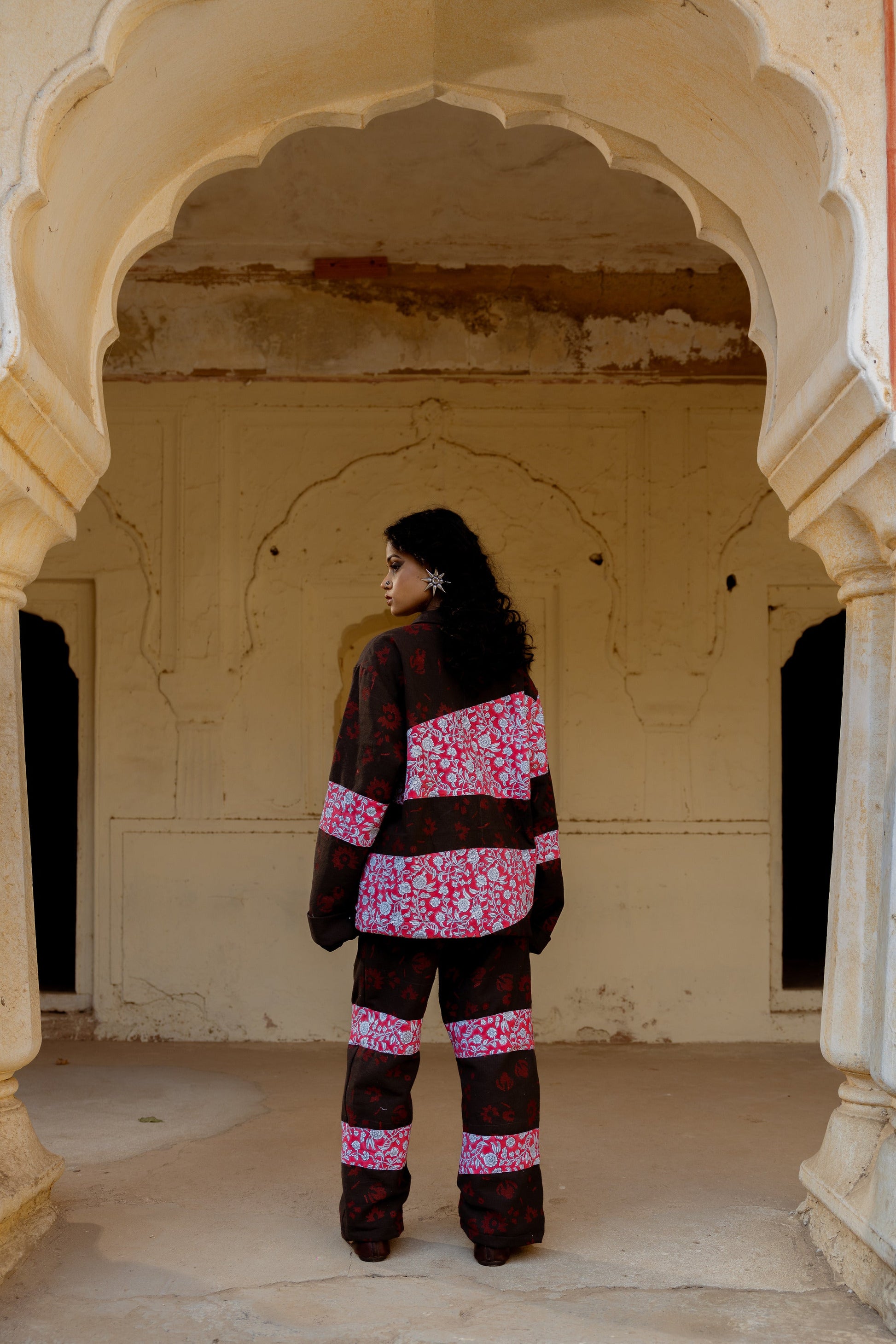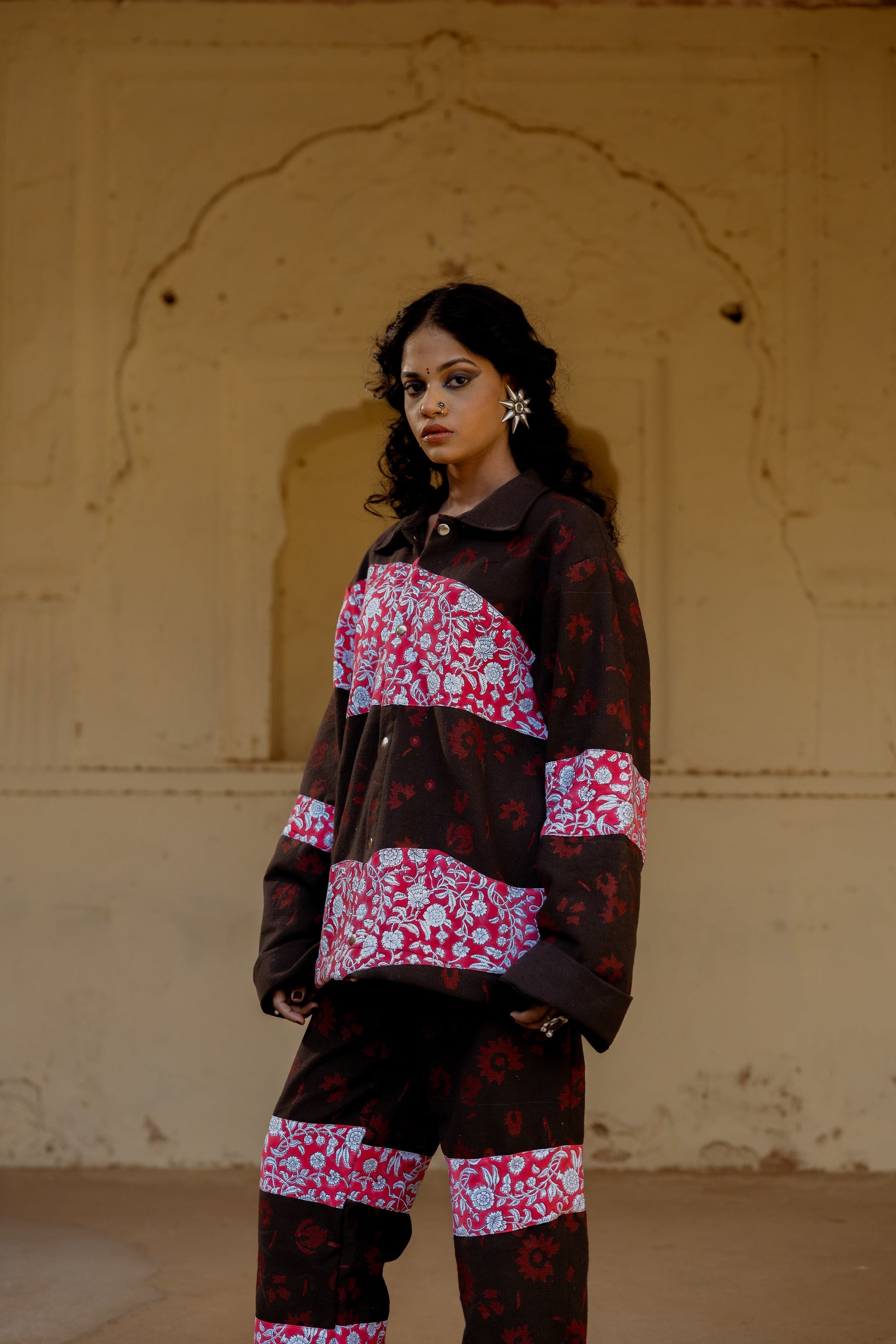 Introducing a truly unique masterpiece, this handmade jacket is crafted from 100% organic cotton khadi fabric and showcases the renowned Sanganeri hand block printing. Created by a 7th-generation artisan, the blocks used are over 100 years old, carrying with them a deep legacy of traditional craftsmanship. The jacket features intricate patchwork, with each stitch reflecting the care and dedication that goes into every detail. Symbolizing the senses, the vibrant patterns and textures evoke a connection to both tradition and innovation. This perfect blend of age-old artistry and modern design makes the jacket a true work of wearable art, celebrating heritage, craftsmanship, and individuality.